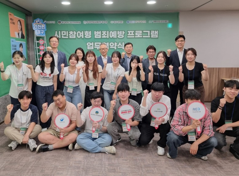 [대구 세계타임즈=한윤석 기자] 대구광역시 자치경찰위원회(위원장 이중구)는 7월 3일(목) 중구 대구스테이션센터에서 금융감독원 대구경북지원, (사)대구시민재단, 한국마약퇴치운동본부 대구지부, 한국부동산원, iM사회공헌재단과 함께 ‘시민참여형 범죄예방 프로그램’ 운영을 위한 업무협약을 체결했다.