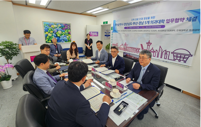 [부산 세계타임즈=이용우 기자] 부산시(시장 박형준)는 어제(9일) 경상남도, 부산·경남 5개 의과대학(부산대·인제대·고신대·동아대·경상국립대)과 함께 '지역 의료인재 양성을 위한 업무협약'을 체결했다고 밝혔다.