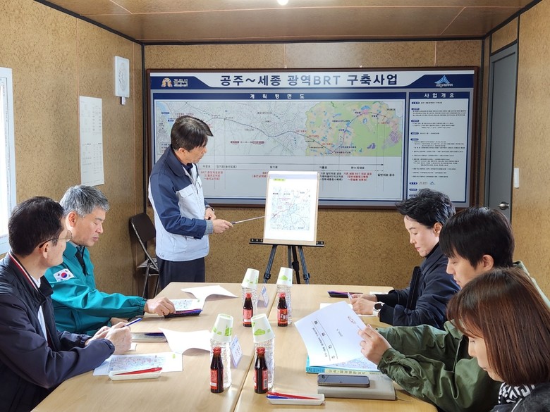 이날 방문단은 공주시 송선동에 위치한 감리단 현장사무실에서 사업 현황 및 공정별 추진 계획에 대한 설명을 청취한 뒤, 차고지와 공주종합버스터미널 정류장, 세종시 다정동 BRT 정류장 등 주요 시설과 운행 노선 현장을 차례로 점검했다.