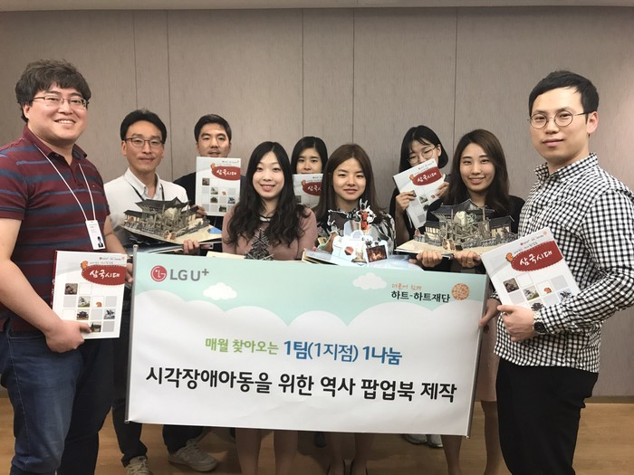 특히 시각장애학생을 위한 특수도서 제작은 LG유플러스가 2016년부터 하트-하트재단(이사장 오지철)과 협업해 진행해오고 있는 대표적인 임직원 참여 사회공헌 활동의 하나이다. 이 활동은 시각장애학생들이 학습 내용을 이해하는 데 도움이 되도록 점자와 촉각 정보가 함께 포함된 도서를 만드는 것이다.