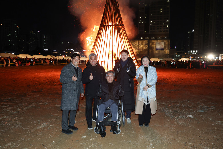 이후 파이어 퍼포먼스와 함께 달집터로 이동해 시장의 점화를 시작으로 사구(四區) 통합 달집태우기와 강강술래가 진행됐다. 거대한 달집이 타오르는 장관 속에서 시민들은 각자의 소망을 담은 소원지를 하늘로 띄우며 한 해의 안녕과 번영을 기원했다.