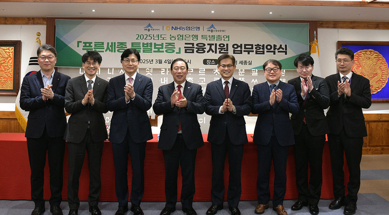 시는 4일 시청에서 농협은행, 세종신용보증재단과 함께 세종사랑 운동의 일환으로 ‘푸른세종 특별보증 금융지원 협약’을 체결했다.