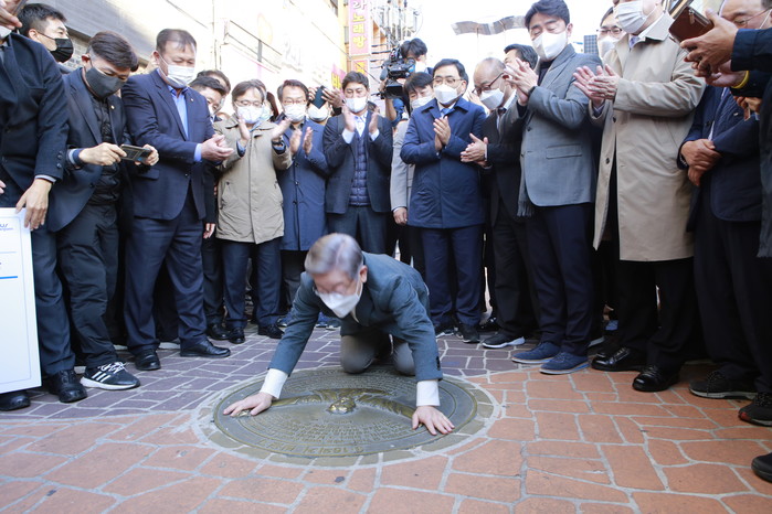 이 후보는 기념관 앞에 있는 표식 동판에 큰절을 올리기도 했다. 동판은 3·15 의거 때 마산 시민들이 처음 모인 자리를 표시한 것으로, 대한민국 민주주의의 역사가 시작된 곳이라는 표식이다. 이 후보의 큰절에 대해 민주당은 "민주주의 영령에 대한 위로와 감사의 뜻을 표하고 3·15 정신을 이어받아서 올바른 정치를 하겠다라는 취지"라고 설명했다.