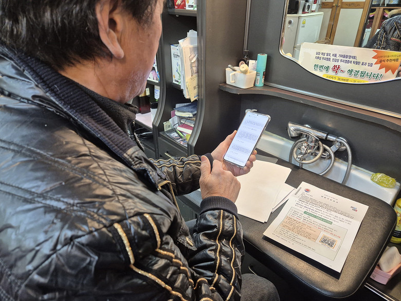 | ▲ 양천구 공중위생업소(이용업) 영업주가 온라인 자율점검을 진행하고 있는 모습 |