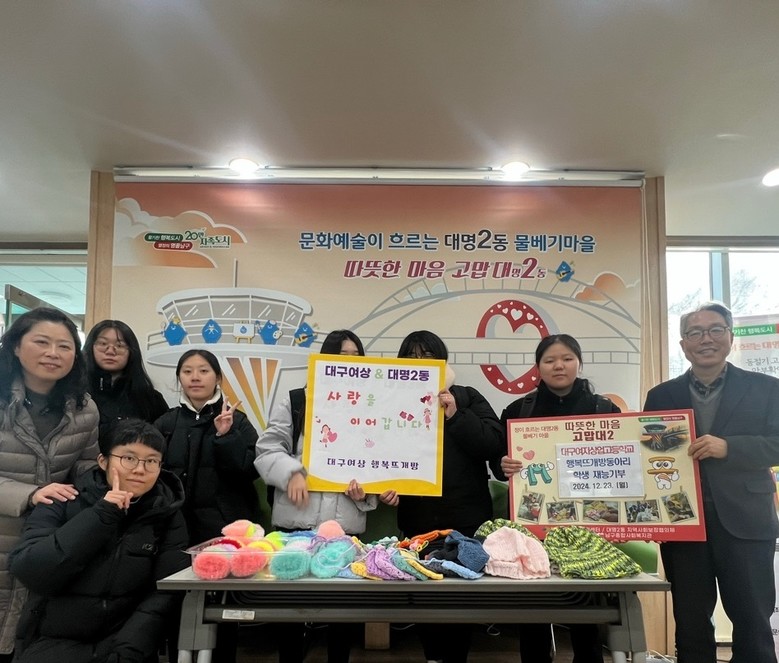 행복뜨개방은 뜨개질을 배우며 정서적 안정을 찾고 유대감을 형성하는 프로그램으로, 학생들이 약 3개월 동안 정성을 담아 제작한 소품들은 대명2동 행정복지센터를 통해 어르신들과 아이들에게 전달될 예정이다.
