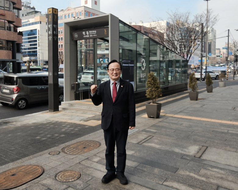 [서울 세계타임즈=이장성 기자] 서울특별시의회 김형재 의원(국민의힘, 강남구2)은 지하철 7호선 학동역 3번 출구와 강남구청역 2번 출입구에 눈과 비를 막아주는 ‘안전 캐노피’가 설치되어 주민들의 통행 편의가 대폭 개선됐다고 밝혔다.