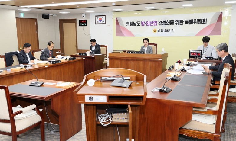 이날 특위는 충남도 환경산림국장과 산림자원연구소 관리과장으로부터 2026년도 밤·임산업 주요업무 추진계획을 보고받고, 산업 위기 극복 전략과 밤‧임산업의 지속가능한 발전 방안을 살폈다.