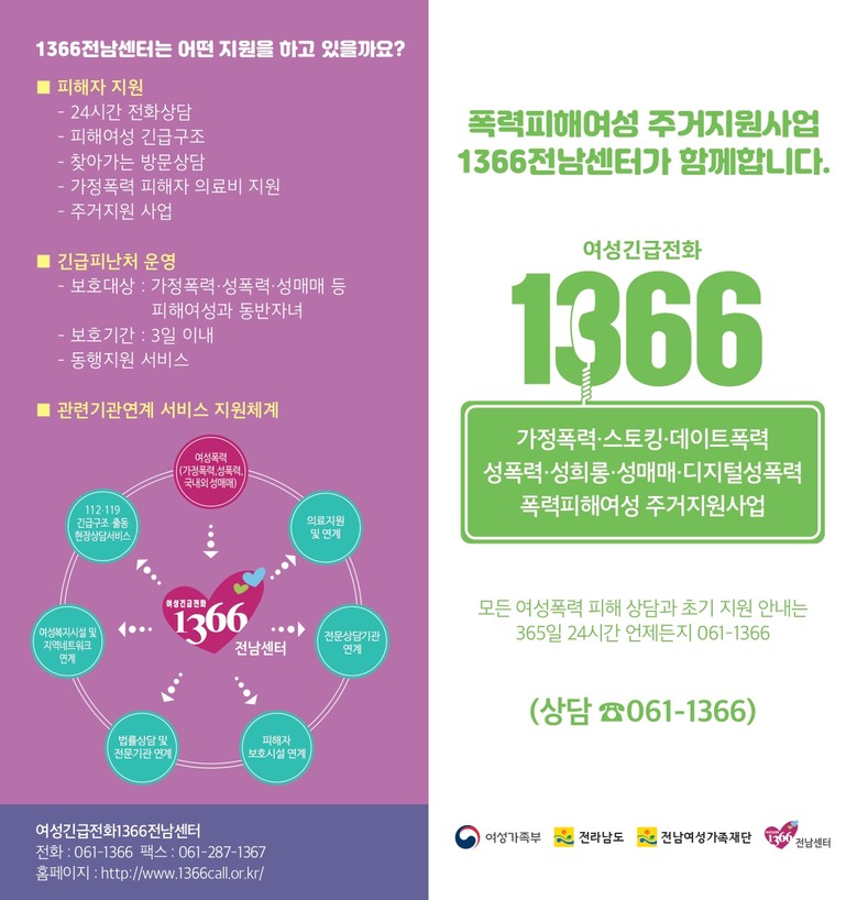 폭력피해자 주거지원사업은 피해자와 동반가족이 안전한 주거 공간에서 생활하며 심리적 안정을 되찾고 자립을 준비하도록 지원하는 사업이다. 전남에서는 현재 서부권(영암)과 동부권(여수), 2개소의 주거지원시설을 운영하고 있다.