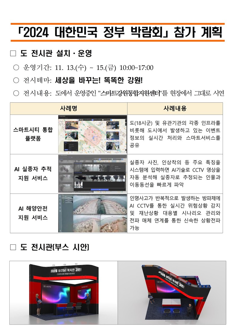 - 전국 최초,“광역형 인공 지능(AI) 스마트강원 도시안전서비스”선보여