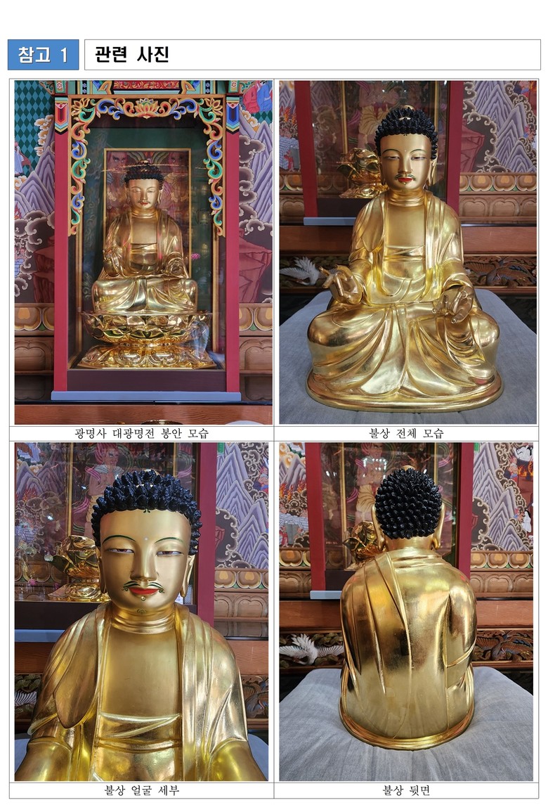 ◈ 2.5. 기준, 시 보유 국가유산은 총 566건… 국가지정 91, 국가등록 22, 시지정 318, 시문화유산자료 128, 시등록문화유산 7 [부산 세계타임즈=이용우 기자] 부산시(시장 박형준)는 오늘(5일) 자로 「광명사 목조여래좌상(光明寺 木造如來坐像)」 1점을 '부산시 유형문화유산'으로 고시한다고 밝혔다.