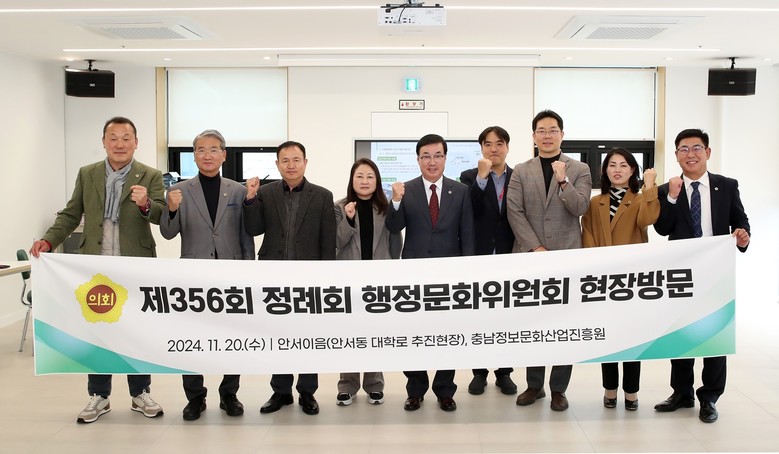 [충남 세계타임즈=백택기 기자] 충남도의회 행정문화위원회(위원장 박기영)는 제356회 정례회 기간 중인 20일 천안청년센터 ‘안서이음’과 충남정보문화산업진흥원(이하 진흥원)을 방문해 충남도의 주요사업 추진 현황 및 시설 전반을 점검했다.