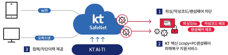 ‘KT 세이프넷’ 가입 시 제공되는 KT 프리미엄 PC백신(1대용 라이선스)을 통해서는 PC 보안 기능과 랜섬웨어로 인한 피해 발생 시 지정된 센터를 통해 데이터 복구 비용을 지원 받을 수 있다. KT 정보보안포탈 ‘시큐어게이트’ 홈페이지에서 백신 라이선스 추가가 가능하다.