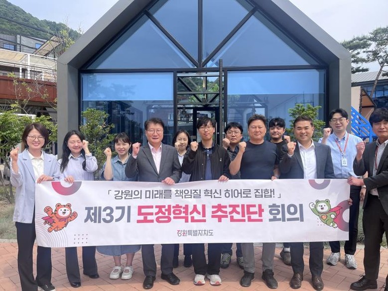[강원도 세계타임즈=김민석 기자] 강원특별자치도(도지사 김진태)는 5월 23일(금), 춘천 구봉산 카페거리 일원에서 ‘제3기 도정혁신 추진단 제3차 회의’를 개최하고, 청사 내 유휴공간 활용 및 조직 내 비효율적 관행 개선 방안을 집중 논의했다.