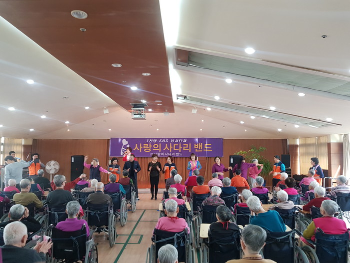 [대전=세계타임즈 이장성 기자] 대전시 SNS 봉사단체 사랑의 사다리 밴드(리더 이정제)는 21일 오후14시, 대덕구 대화동에 위치한 다비다의 집(원장 윤진순)에서 요양원 어르신들께 위문공연 봉사로 사회적 효행을 실천하였다.