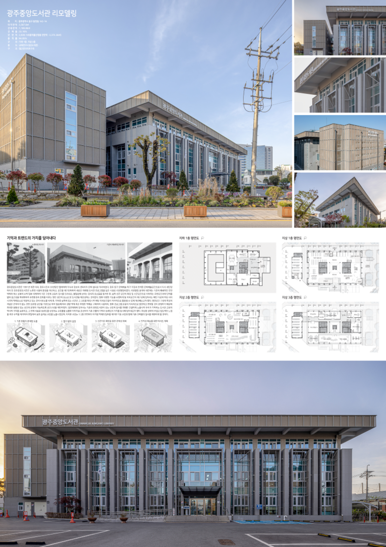특히 최우수작으로 선정된 ‘광주중앙도서관 리모델링’은 기존 건물의 딱딱하고 무거운 외관을 정리한 뒤 다양한 시도와 금속재료 등을 활용해 현대적 감각을 구현해 주변과의 조화를 이루도록 노력했다.