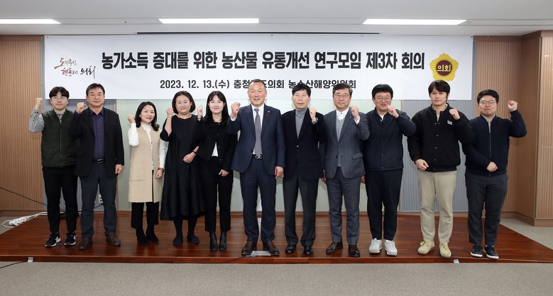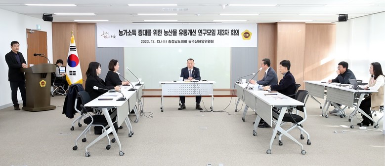[충남 세계타임즈=백택기 기자] 충남도의회 ‘농가소득 증대를 위한 농산물 유통체계 개선을 위한 연구모임’(대표 주진하)은 지난 13일 도의회 303호 회의실에서 3차 회의를 열고 최종보고회를 가졌다.