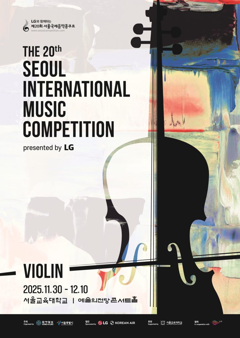 - 1위 5만 달러 등 세계적 수준의 상금·공연 기회 제공, 글로벌 신인 음악가 발굴의 장 [서울 세계타임즈=이장성 기자] ‘제20회 서울국제음악콩쿠르’가 오는 11월 30일부터 12월 10일까지 서울교육대학교 종합문화관과 예술의전당 콘서트홀에서 바이올린 부문으로 개최된다.