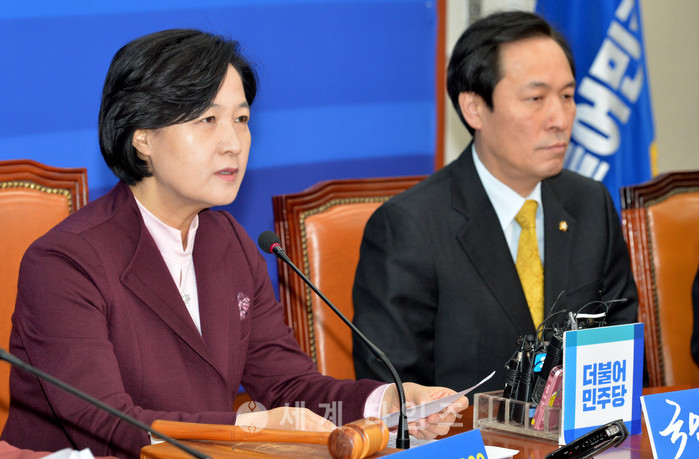 20일 오전 서울 여의도 국회에서 더불어민주당 당 대표실에서 열린 최고위원회의에 참석한 추미애 대표가 모두발언하고 있다. 추 대표는 특검 수사기간 연장 요청에 황교안 대통령 권한대행 국무총리는 늦어도 내일까지 승인해야 한다며 최후통첩했다. 2017.02.20