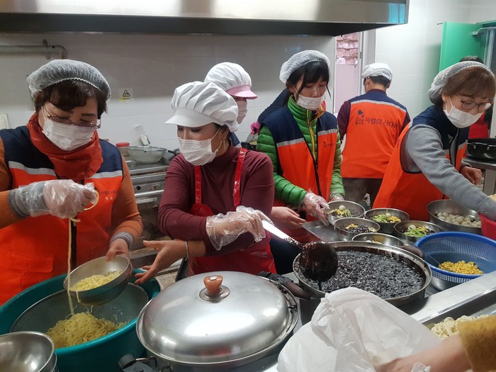 이날 짜장면봉사에는 유희자 이사, 문서혜 재무국장, 강은정 회원국장을 비롯해서 회원 15명이 오후 5시 아이들 저녁시간에 짜장면 봉사를 하였다.