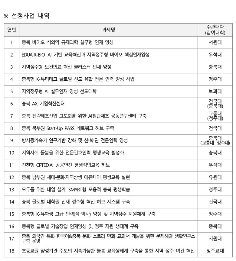 김영환 지사는 “이번 공모를 통해 새정부 정책과제와 지역 현안에 부합하는 과제를 RISE 사업에 담게 되었다.”면서, “대학이 지자체와 함께 지역 혁신의 주체가 될 수 있도록 지원하겠다.”라고 밝혔다.