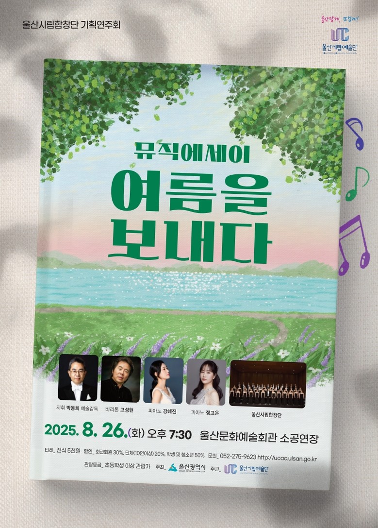 국내 최고의 성악가‘고성현’과 함께하는 무대 [울산 세계타임즈=이호근 기자] 울산시립합창단이 오는 8월 26일(화) 오후 7시 30분 울산문화예술회관 소공연장에서 기획연주〈뮤직 에세이 여름을 보내다〉를 선사한다.