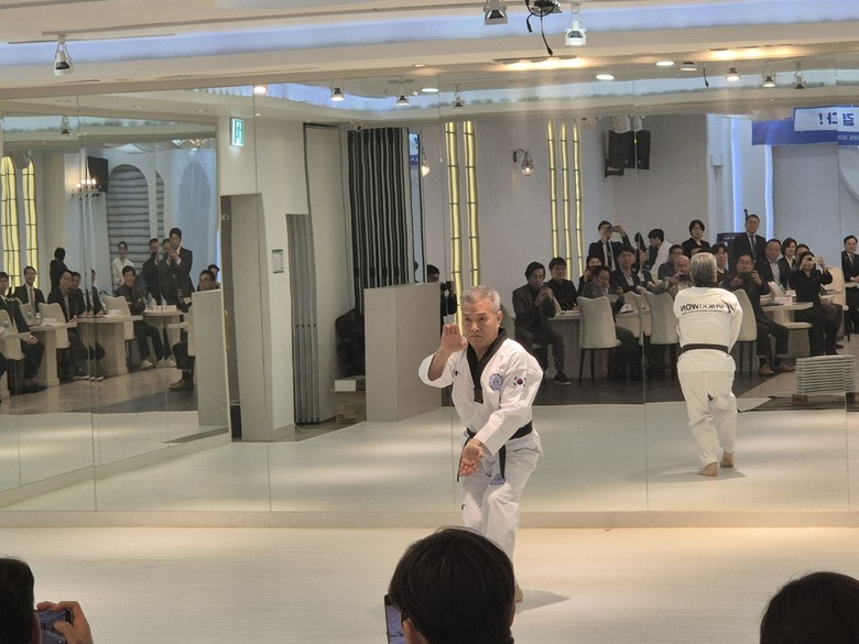 한편, 태권도와 경제가 만나는 자리! 글로벌네트워크의 새로운 시작! 태권도 경제연합 출범식에 명예위원장 남성현 (공인9단) 국기원 시 섬 단장은 태권도 품세와 격파술 시범을 보였다.