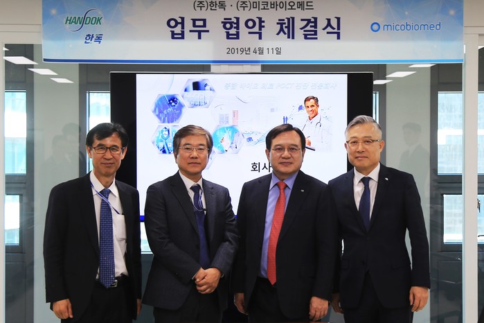 한독(회장 김영진)이 체외진단 의료기기 제조 회사 미코바이오메드(대표이사 김성우)와 4월 11일 판교에서 콜레스테롤 측정기 국내 사업 총판에 대한 파트너십 계약을 체결했다.