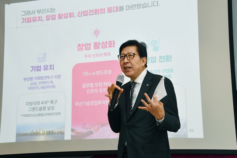 ◈ 부산 벤처투자 미래 비전을 박 시장이 직접 발표하고, 창업생태계 조성의 전반적인 사안들을 참석자들과 논의하기 위해 마련돼