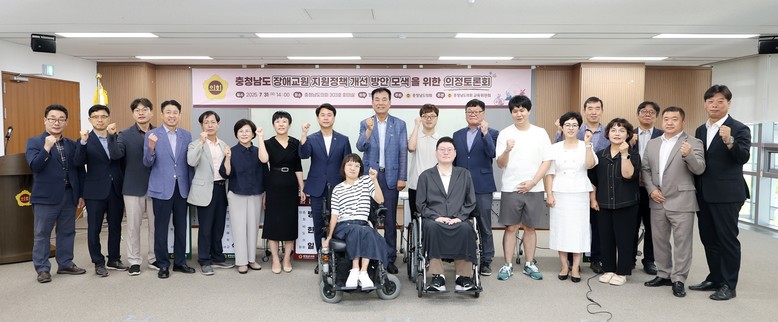 좌장을 맡은 방한일 의원은 “장애 교원도 우리 교육공동체의 소중한 일원으로, 차별 없이 안전하게 근무할 수 있는 환경을 만드는 것은 매우 중요한 과제”라며 “충남 장애 교원 지원체계가 실효성 있게 작동할 수 있도록 도의회도 교육청 및 관계 기관과 적극 협력하고, 정책적 뒷받침을 아끼지 않겠다”고 밝혔다.