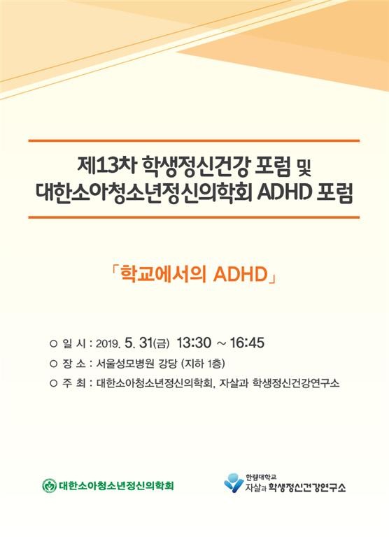 이번 포럼은 학교 현장에서 흔히 발견되는 ADHD 학생들에 대한 인식제고와 적절한 개입을 위한 대안을 모색하기 위한 자리다. 각 분야의 전문가들이 참석하여 ADHD의 이해와 교육현장에서의 관리현황과 문제점을 짚어보고, 학생 맞춤형 개입 전략 및 가정-학교-지역사회의 협력 방안에 대한 토론의 시간을 갖는다.