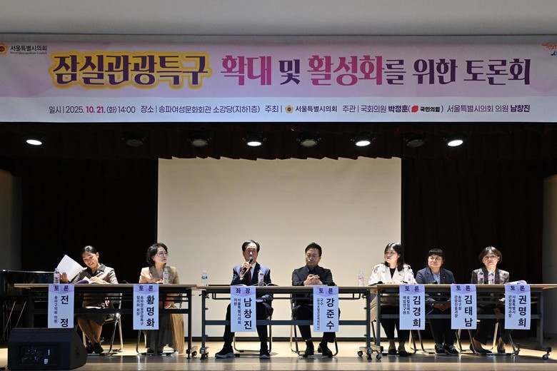 이날 토론회는 서울시의회가 주최하고 박정훈 국회의원과 남 의원이 공동으로 주관해 개최했으며 안양대학교 교수로 재직 중이면서 한국호텔관광학회 이사로 활동하고 있는 강준수 교수가 확대 및 활성화를 위한 발제를 하고 전정 송파구의원, 황명화 송파잠실관광특구협의회 회장, 로컬임팩트 김경희 선임연구위원(한양대 겸임교수), 송파구 관광진흥과장, 서울시 관광정책과장이 토론자로 참석했다. 1부 사회는 김광철 송파구의원이 맡았다.