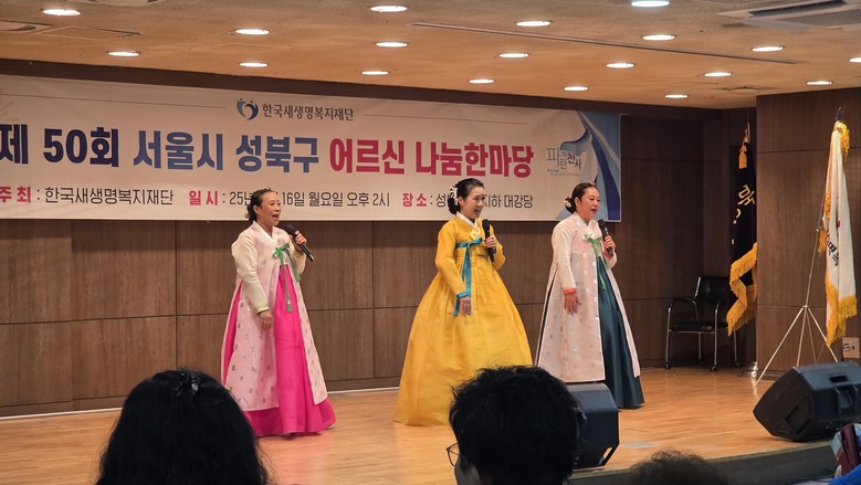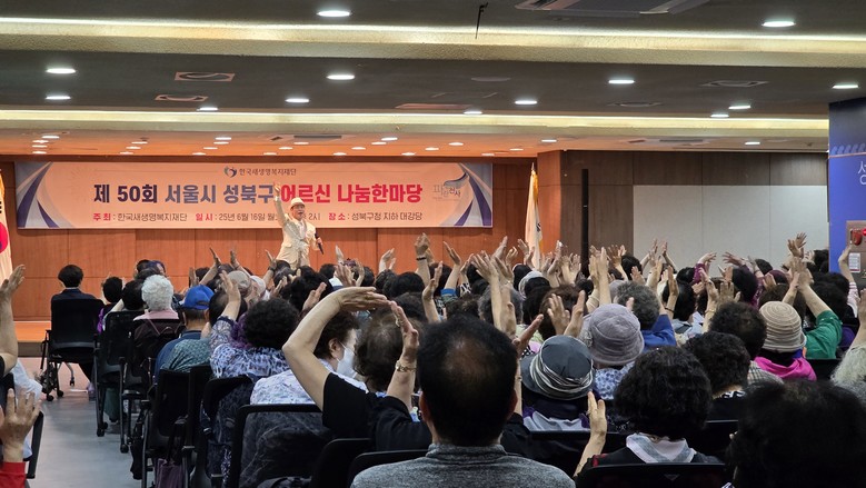 [세계타임즈]최성룡기자 = 한국새생명복지재단(이사장 송창익)은 2025년 6월 16일(월) 오후 2시, 서울시 성북구청 대강당에서 소외된 어르신들을 위한 문화 나눔 행사인 **‘어르신 나눔한마당’**을 성황리에 개최했다.