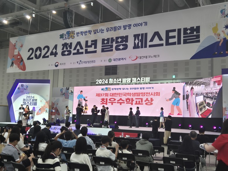 [대전 세계타임즈=이채봉 기자] 대전새미래중학교(교장 유민정)는 대전 DCC컨벤션센터에서 개최된 제37회 대한민국학생발명전시회 시상식에서 중등부문 최우수학교상(특허청장상)을 수상하였다고 12일(월) 밝혔다.