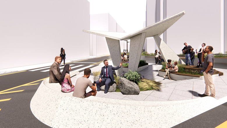 광장 중앙에는 햇빛과 비를 조절하는 캐노피 구조물이 설치돼 도심 속 그늘 쉼터 역할을 하고, 계단형 데크벤치는 버스킹 등 시민들의 창의적인 활동을 지원한다. 식물과 자연석이 어우러진 친환경적 공간 구성은 시민들에게 쾌적한 휴식처를 제공하고, 도시 속 자연을 느낄 수 있도록 설계됐다.