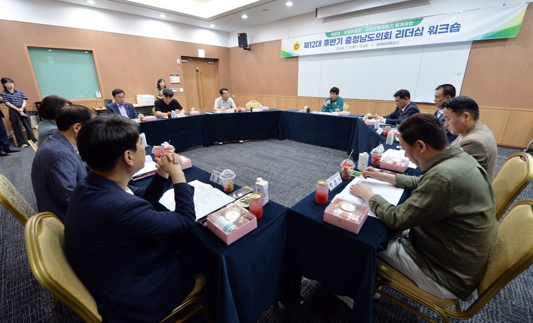 [충남 세계타임즈=백택기 기자] 충남도의회(의장 홍성현)는 11일 보령시 비체팰리스에서 제12대 후반기 충청남도의회 리더십 워크숍을 열어 향후 의정활동 발전 방향을 논의했다.