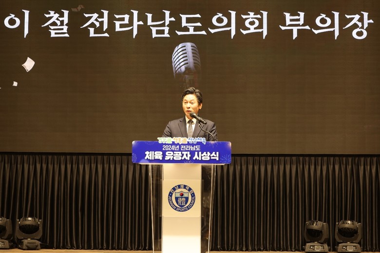 이철 부의장은 축사를 통해 체육발전 유공자들에게 진심 어린 축하를 전하며, “오늘 영광스러운 상을 수상하신 분들이 있기에 전라남도 체육의 미래는 더욱 밝고 희망차다”고 말했다.