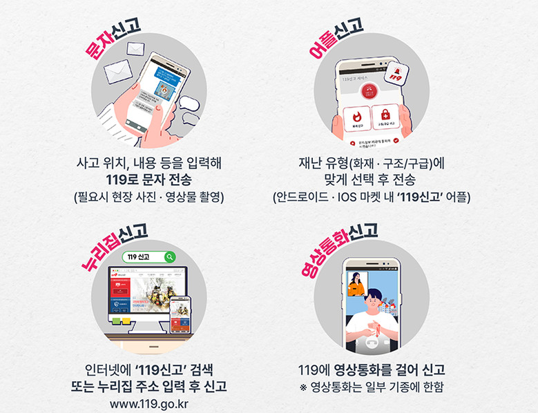 다매체 119신고서비스는 재난 발생 시 음성·영상통화 외에도 문자나 119신고 어플 등 다양한 방법으로 신고할 수 있는 서비스다.