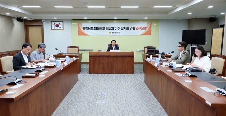 [충북 세계타임즈=이현진 기자] 충남도의회는 28일 도의회 회의실에서 ‘충청남도 재외동포 은퇴자 이주 유치를 위한 연구모임’ 제2차 회의를 개최하고, 충남도가 추진하는 재외동포 은퇴자 유치 사업의 성공을 위한 발판을 마련했다.