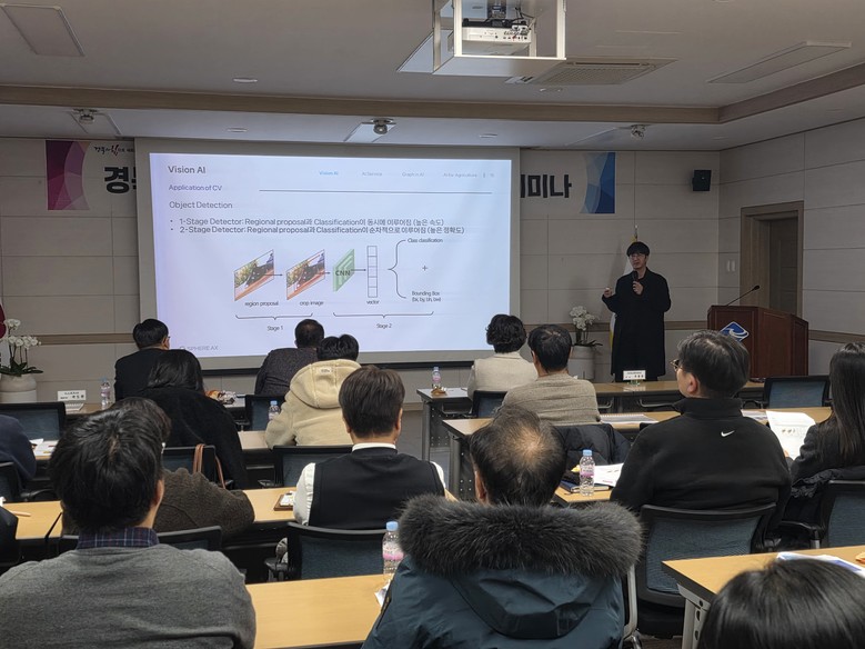이번 세미나는 스마트농업연구회 회원과 시군농업기술센터 스마트농업 담당 공무원 50여 명이 참석한 가운데 최근 급성장하고 있는 세계 스마트농업 기술 중 이미지 기반 인공지능(AI)과 식물공장을 활용한 미래 농업의 실전적 해답을 찾기 위해 마련됐다.