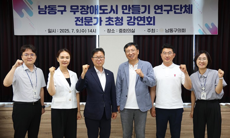 [남동구 세계타임즈=심하린 기자] 인천 남동구의회 장덕수 의원(더불어민주당, 만수2·3·4·5동)이 대표의원으로 있는 「남동구 무장애도시 만들기」 연구단체가 9일, 동료 의원들과 함께 전문가를 초청한 강연회를 개최했다.