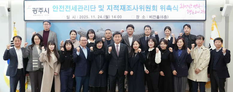 | ▲‘안전전세관리단’ 출범 및 ‘지적재조사위원회’ 위촉식 기념촬영.(사진=광주시) |