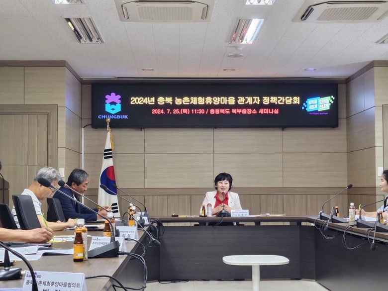 이날 간담회에는 김꽃임 산업경제위원장, 충북농촌체험휴양마을협의회 박효서 회장을 비롯한 협의회 회원, 충청북도 관계 공무원 등이 참석했다.