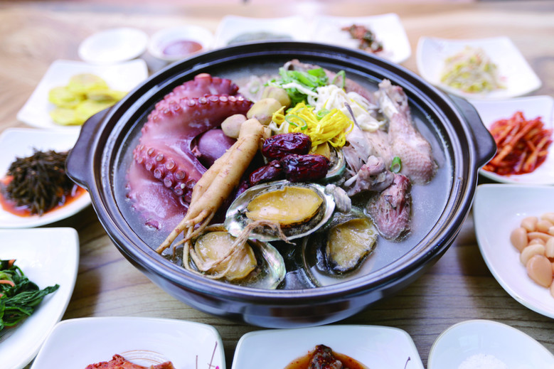 해신탕은 ‘바다의 신에게 드리는 음식’이라는 뜻으로 여수, 고흥, 완도, 신안 등 해산물이 풍부한 남해안 지역에서 유래된 보양식이다. 온 국민의 보양식 삼계탕에 천연 다시마와 미역을 먹고 자란 전복과 문어를 넣는 게 특징이다. 전남도는 전국 수산물 생산량의 상당수를 차지하고 있어 새우, 꽃게 등의 해산물을 풍성하게 넣어 우려내기 때문에 해신탕의 진가를 맛볼 수 있다.
