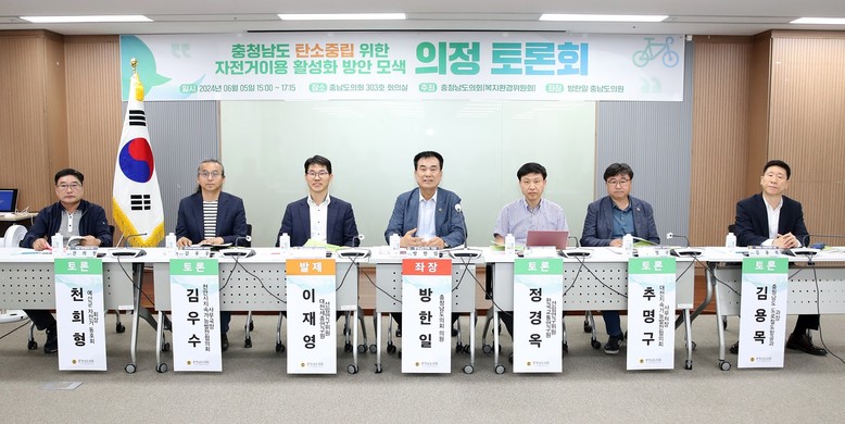 [충남 세계타임즈=백택기 기자] 충남도의회는 5일 도의회 회의실에서 ‘충청남도 탄소중립 위한 자전거이용 활성화 방안 모색’을 주제로 의정토론회를 개최했다.