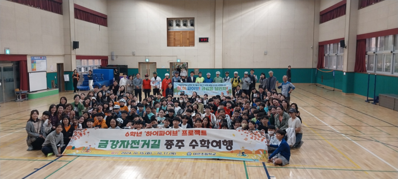[세종 세계타임즈=이채봉 기자] 미르초등학교(교장 양한준, 이하 미르초)는 지난 10월 15일부터 10월 17일까지 2박 3일간 6학년 학생 110명을 대상으로 금강 자전거길을 자전거로 종주하는 수학여행을 실시했다.