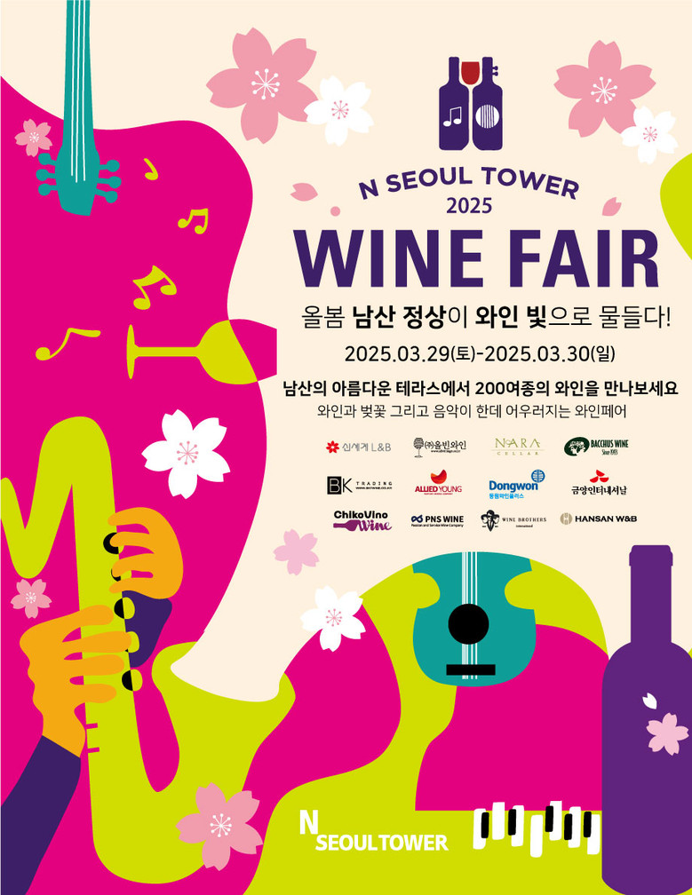 이번 와인페어는 오는 3월 29일, 30일 주말 양일간 N서울타워 광장에서 진행된다. 12개 와인 수입사가 준비한 100여 종의 다양한 유명 와인을 시음해 볼 수 있으며, 200여종의 와인을 특별 할인가로 구매할 수 있는 와인장터도 운영된다.