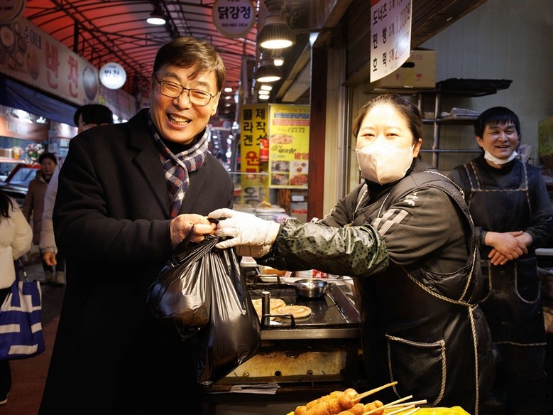 김 의장은 상인들과 인사를 나누고, 영업 현장에서 겪는 어려움과 건의사항을 청취했다. 또한 전통시장 이용 활성화를 위해 온누리상품권으로 명절 성수품 등을 구매하고 시장을 찾은 시민들과 명절 인사를 나눴다.