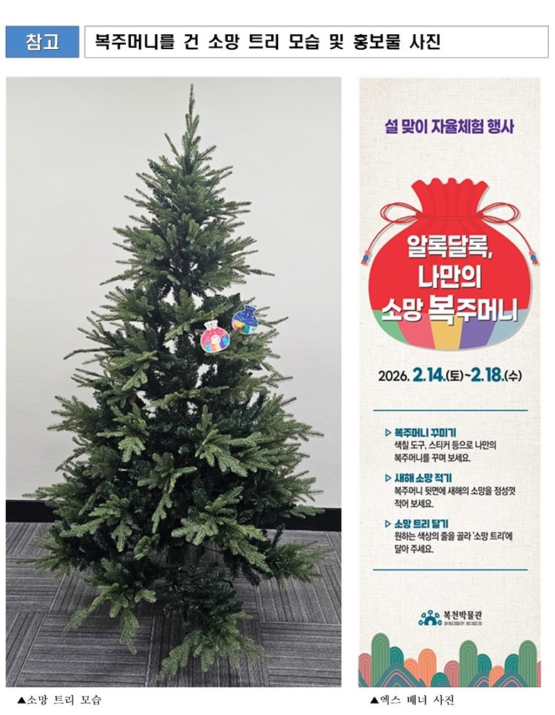 이 행사는 관람객이 직접 복주머니를 꾸미고 새해 소망을 적어 '소망 트리'에 걸며 전통의 의미를 되새기고 가족 간 유대감을 강화하는 기회를 제공하기 위해 기획되었다.