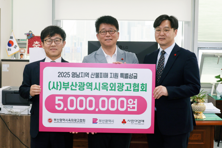 [부산 세계타임즈=이용우 기자] 부산시(시장 박형준)는 어제(8일) (사)부산광역시옥외광고협회(이하 부산옥외광고협회)가 영남지역 산불피해 지원을 위해 기부금 5백만 원을 전달했다고 밝혔다.