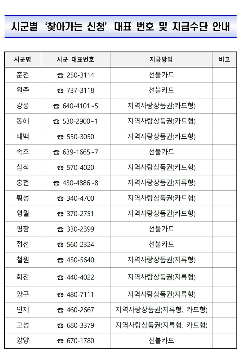 ‘찾아가는 신청’은 거동이 불편한 고령자, 장애인, 정보 취약계층 등을 대상으로 읍면동 행정복지센터가 직접 방문해 신청과 지급을 지원하는 제도로, 시군별 여건에 따라 인력을 배치하고 유선 안내와 사전 예약을 통해 신속히 대응할 방침이다.